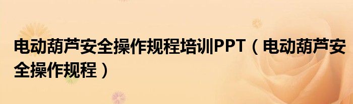 电动葫芦安全操作规程培训PPT(电动葫芦安全操作规程)