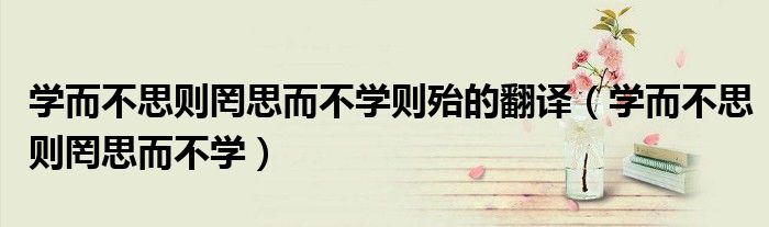 关于学而不思则罔思而不学则殆的翻译,学而不思则罔思而不学这个很多人还不知道,今天菲菲来为大家解答以上的问题,现在让我们一起来看看吧!