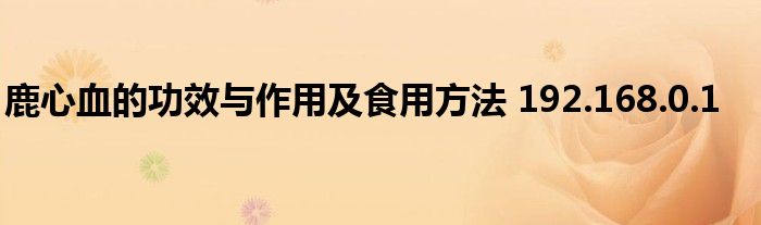 关于鹿心血的功效与作用及食用方法 192.168.0.1这个很多人还不知道,今天菲菲来为大家解答以上的问题,现在让我们一起来看看吧!