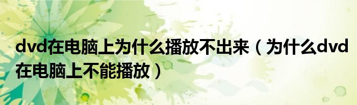 关于dvd在电脑上为什么播放不出来,为什么dvd在电脑上不能播放这个很多人还不知道,今天菲菲来为大家解答以上的问题,现在让我们一起来看看吧!