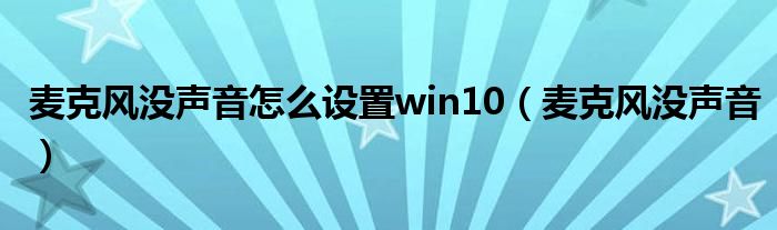 大家好,小飞来为大家解答以上问题,麦克风没声音怎么设置win10,麦克风没声音很多人还不知道,现在让我们一起来看看吧!