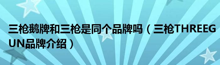 大家好,小源来为大家解答以上问题。三枪鹅牌和三枪是同个品牌吗,三枪THREEGUN品牌介绍很多人还不知道,现在让我们一起来看看吧!