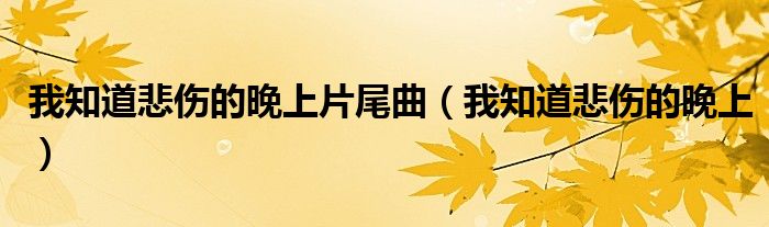 我知道悲伤的晚上片尾曲,我知道悲伤的晚上这个很多人还不知道,小飞来为大家解答以上的问题。现在让我们一起来看看吧!