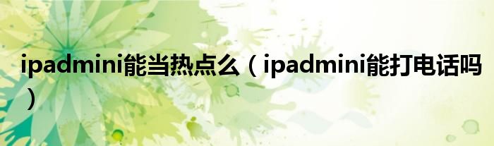大家好,小飞来为大家解答以上问题,ipadmini能当热点么,ipadmini能打电话吗很多人还不知道,现在让我们一起来看看吧!