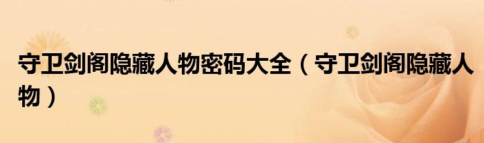 守卫剑阁隐藏人物密码大全,守卫剑阁隐藏人物很多人还不知道,乐乐来为大家解答以上问题,现在让我们一起来看看吧!