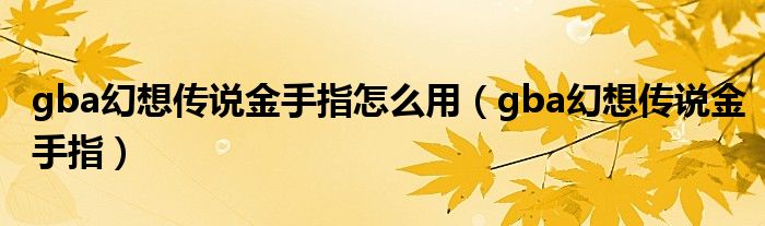 大家好,小飞来为大家解答以上的问题。gba幻想传说金手指怎么用,gba幻想传说金手指这个很多人还不知道,现在让我们一起来看看吧!