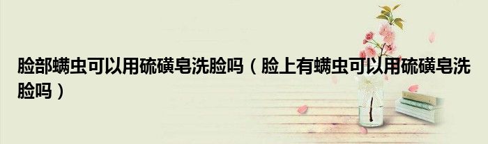 大家好,linda来为大家解答以上的问题。脸部螨虫可以用硫磺皂洗脸吗,脸上有螨虫可以用硫磺皂洗脸吗很多人还不知道,现在让我们一起来看看吧!