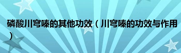 大家好,linda来为大家解答以上的问题。磷酸川穹嗪的其他功效,川穹嗪的功效与作用很多人还不知道,现在让我们一起来看看吧!
