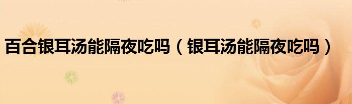 大家好,linda来为大家解答以上的问题。百合银耳汤能隔夜吃吗,银耳汤能隔夜吃吗很多人还不知道,现在让我们一起来看看吧!