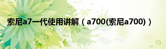 大家好,小常来为大家解答以上问题。索尼a7一代使用讲解,a700(索尼a700)很多人还不知道,现在让我们一起来看看吧!