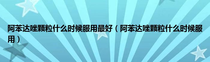 大家好,linda来为大家解答以上的问题。阿苯达唑颗粒什么时候服用最好,阿苯达唑颗粒什么时候服用很多人还不知道,现在让我们一起来看看吧!