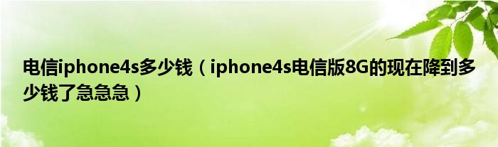 1,苹果4s电信版的现在多少钱:您好,首先感谢您对中国电信的支持。根据您的描述:iPhone 4s 电信版8g容量的,在安徽电信网上营业厅报价2238元。选择合约机还有更多优惠。您可以在安徽电信网上营业厅选购电信手机,网厅办理合约机赠送高额话费,可以0元购机,非常优惠,目前多个品牌4G机型全面上市!安徽电信网上营业厅现推出零月租、零门槛、本地拨打省内电信号全免费,流量不清零的iFree卡,无套餐、无合约、无最低消费,限量抢购中,详情访问安徽电信网上营业厅。以上答复仅供参考,具体请咨询10000,以安徽电信网上营业厅或营业厅公告为准。感谢您长期以来给予中国电信的支持,祝您生活愉快,谢谢!