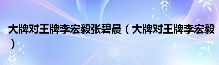 大牌对王牌李宏毅张碧晨(大牌对王牌李宏毅)