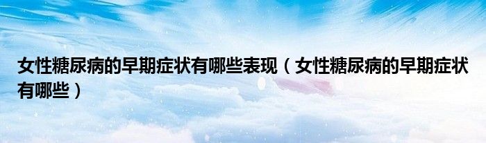大家好,linda来为大家解答以上的问题。女性糖尿病的早期症状有哪些表现,女性糖尿病的早期症状有哪些很多人还不知道,现在让我们一起来看看吧!