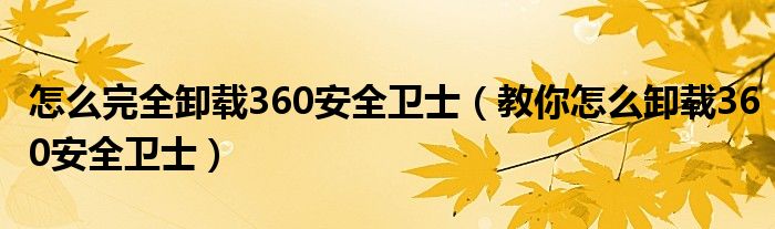 大家好,今天小悦来为大家解答以上问题。怎么完全卸载360安全卫士,教你怎么卸载360安全卫士很多人还不知道,现在让我们一起来看看吧!