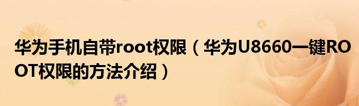 大家好,今天小悦来为大家解答以上问题。华为手机自带root权限,华为U8660一键ROOT权限的方法介绍很多人还不知道,现在让我们一起来看看吧!