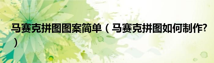 大家好,今天小悦来为大家解答以上问题。马赛克拼图图案简单,马赛克拼图如何制作?很多人还不知道,现在让我们一起来看看吧!