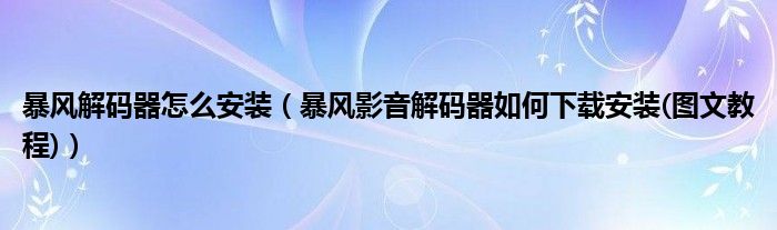 大家好,今天小悦来为大家解答以上问题。暴风解码器怎么安装,暴风影音解码器如何下载安装(图文教程)很多人还不知道,现在让我们一起来看看吧!