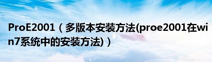 大家好,今天小悦来为大家解答以上问题。ProE2001,多版本安装方法(proe2001在win7系统中的安装方法)很多人还不知道,现在让我们一起来看看吧!