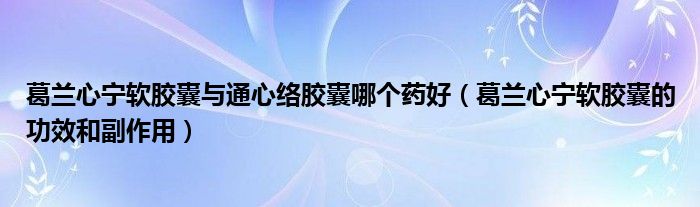 大家好,linda来为大家解答以上的问题。葛兰心宁软胶囊与通心络胶囊哪个药好,葛兰心宁软胶囊的功效和副作用很多人还不知道,现在让我们一起来看看吧!