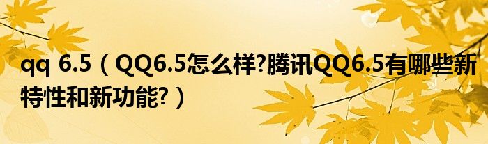 大家好,今天小悦来为大家解答以上问题。qq 6.5,QQ6.5怎么样?腾讯QQ6.5有哪些新特性和新功能?很多人还不知道,现在让我们一起来看看吧!