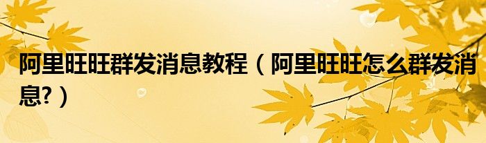 大家好,今天小悦来为大家解答以上问题。阿里旺旺群发消息教程,阿里旺旺怎么群发消息?很多人还不知道,现在让我们一起来看看吧!