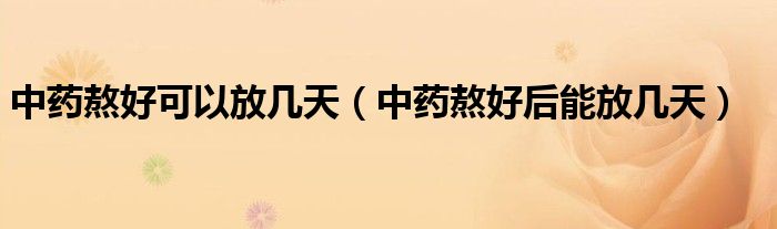大家好,linda来为大家解答以上的问题。中药熬好可以放几天,中药熬好后能放几天很多人还不知道,现在让我们一起来看看吧!