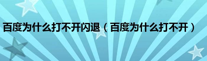 大家好,雨雨来为大家解答以上问题,百度为什么打不开闪退,百度为什么打不开很多人还不知道,现在让我们一起来看看吧!