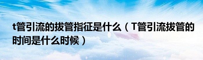 大家好,linda来为大家解答以上的问题。t管引流的拔管指征是什么,T管引流拔管的时间是什么时候很多人还不知道,现在让我们一起来看看吧!