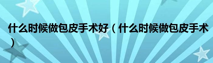 大家好,linda来为大家解答以上的问题。什么时候做包皮手术好,什么时候做包皮手术很多人还不知道,现在让我们一起来看看吧!