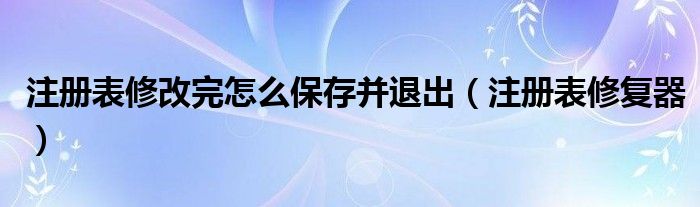 大家好,雨雨来为大家解答以上问题,注册表修改完怎么保存并退出,注册表修复器很多人还不知道,现在让我们一起来看看吧!