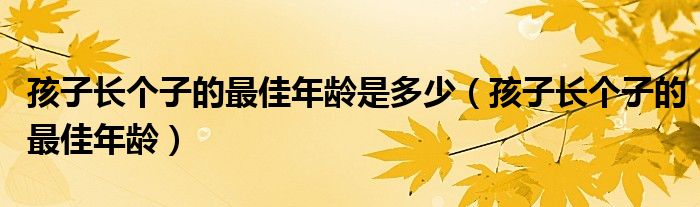 大家好,linda来为大家解答以上的问题。孩子长个子的最佳年龄是多少,孩子长个子的最佳年龄很多人还不知道,现在让我们一起来看看吧!