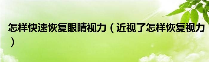 大家好,linda来为大家解答以上的问题。怎样快速恢复眼睛视力,近视了怎样恢复视力很多人还不知道,现在让我们一起来看看吧!