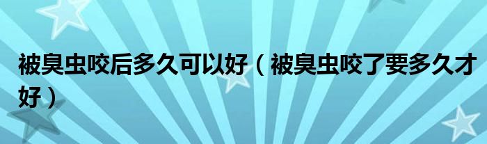 2、被臭虫叮咬后,身上会出现红色的丘疹,非常痒,称为丘疹性荨麻疹。好转的时间取决于一个人的皮肤对臭虫吐到皮肤里的唾液是否敏感,是否采取了有效的治疗。如果叮咬处非常痒而没有任何治疗,人们只会抓啊抓。这种情况下会愈合的非常慢,甚至有的人几个月都好不了,反而会形成痒疹,导致结节变硬,发痒。如果痘痘很小,痒的不是很厉害,不用挠就能控制住,这种过敏反应大概需要10天左右,痘痘就会慢慢消退。如果前期采取积极的治疗方法,如服用抗过敏药物抑制机体对昆虫唾液的过敏反应,同时涂抹有效的止痒抗过敏软膏进行治疗,也有可能2-3天后,臭虫叮咬引起的皮疹痊愈,自然恢复没有固定时间。要看个人皮肤的状况,皮损是否经常被抓挠和刺激。