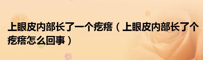 大家好,linda来为大家解答以上的问题。上眼皮内部长了一个疙瘩,上眼皮内部长了个疙瘩怎么回事很多人还不知道,现在让我们一起来看看吧!