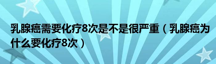 大家好,linda来为大家解答以上的问题。乳腺癌需要化疗8次是不是很严重,乳腺癌为什么要化疗8次很多人还不知道,现在让我们一起来看看吧!