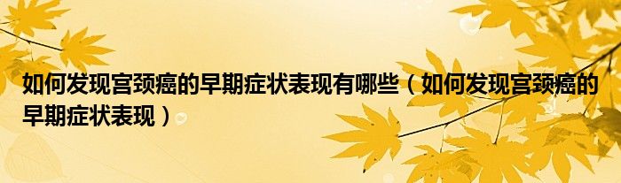 大家好,linda来为大家解答以上的问题。如何发现宫颈癌的早期症状表现有哪些,如何发现宫颈癌的早期症状表现很多人还不知道,现在让我们一起来看看吧!