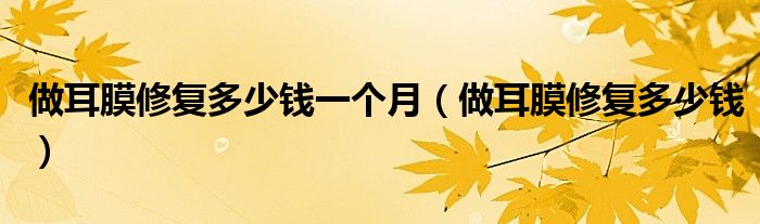 大家好,linda来为大家解答以上的问题。做耳膜修复多少钱一个月,做耳膜修复多少钱很多人还不知道,现在让我们一起来看看吧!