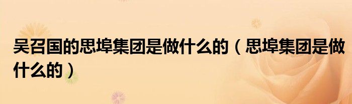 大家好,小晋来为大家解答以下问题,关于吴召国的思埠集团是做什么的,思埠集团是做什么的很多人还不知道,今天让我们一起来看看吧!