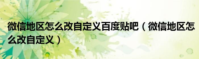 大家好,小晋来为大家解答以下问题,关于微信地区怎么改自定义百度贴吧,微信地区怎么改自定义很多人还不知道,今天让我们一起来看看吧!