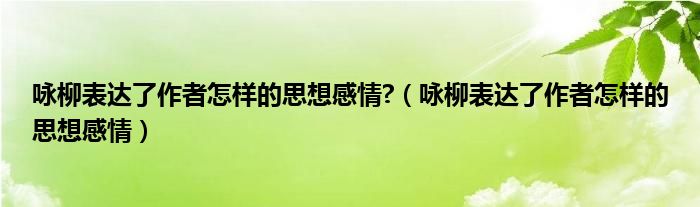 大家好,小晋来为大家解答以下问题,关于咏柳表达了作者怎样的思想感情?,咏柳表达了作者怎样的思想感情很多人还不知道,今天让我们一起来看看吧!
