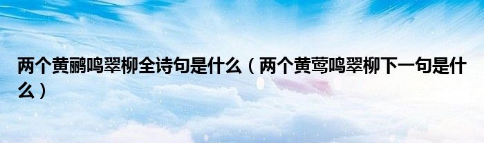 大家好,小晋来为大家解答以下问题,关于两个黄鹂鸣翠柳全诗句是什么,两个黄莺鸣翠柳下一句是什么很多人还不知道,今天让我们一起来看看吧!