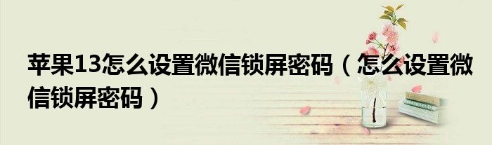 大家好,小晋来为大家解答以下问题,关于苹果13怎么设置微信锁屏密码,怎么设置微信锁屏密码很多人还不知道,今天让我们一起来看看吧!