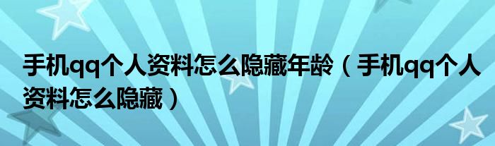 大家好,小晋来为大家解答以下问题,关于手机qq个人资料怎么隐藏年龄,手机qq个人资料怎么隐藏很多人还不知道,今天让我们一起来看看吧!