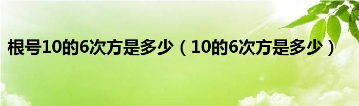 最佳答案大家好,小晋来为大家解答以下问题,关于根号10的6次方是多少,10的6次方是多少很多人还不知道,今天让我们一起来看看吧!1、2.计算:0.5乘以6等于3。2、10的三次方等于10乘以10乘以10。3、也就是1000。本文到此结束,希望对大家有所帮助。