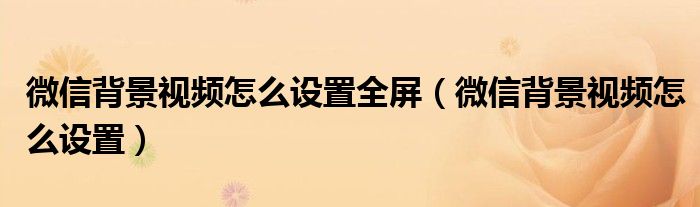 大家好,小晋来为大家解答以下问题,关于微信背景视频怎么设置全屏,微信背景视频怎么设置很多人还不知道,今天让我们一起来看看吧!