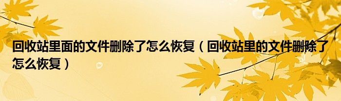 以上是关于如何恢复回收站中已删除文件以及如何恢复已删除文件的介绍。希望对你有帮助!