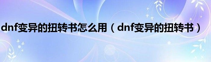dnf变异的扭转书怎么用(dnf变异的扭转书)