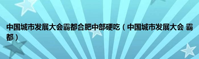 大家好,小晋来为大家解答以下问题,关于中国城市发展大会霸都合肥中部硬吃,中国城市发展大会 霸都很多人还不知道,今天让我们一起来看看吧!