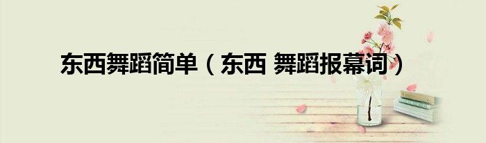 关于东西舞蹈简单,东西 舞蹈报幕词这个很多人还不知道,今天菲菲来为大家解答以上的问题,现在让我们一起来看看吧!